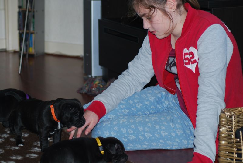 Khyan komt ook even kijken bij Guusje haar pups 11-2016